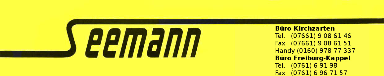 | Impressum Geschäftsführer/Inhaber: Hans - Peter Seemann  Steuernummer:  06234/46014  Umsatzsteuer ID: 142 069 532 Betriebsnummer: 28103  Referenz 71650000 Mitglied der Handwerkskammer Freiburg (Handwerksrolle) Der Betrieb gehört zur Süddeutschen Metallberufsgenossenschaft Vertragspartner TÜV SÜD Industrie Service GmbH - Freiburg |